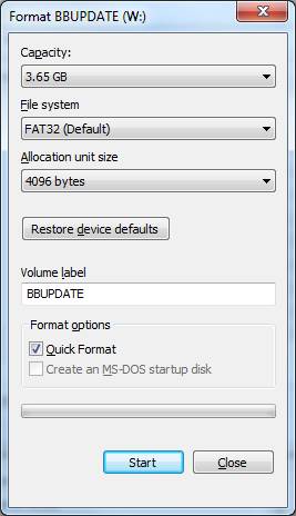 Click on the Start button. The format will take a short time to complete.