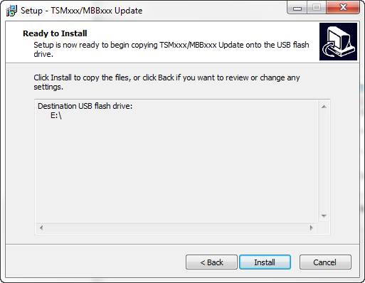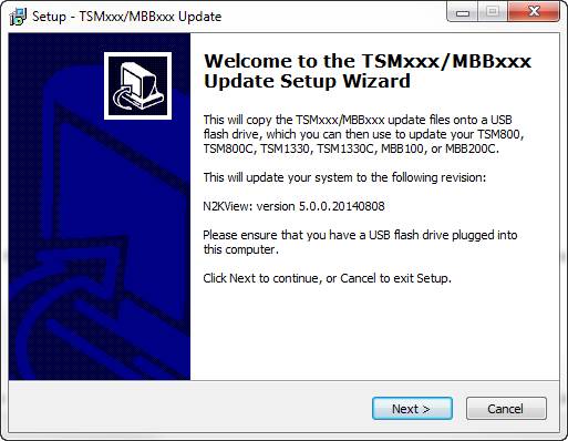 On the same PC, download and run the update program from the “Updates” link of the DSM800/TSMxxx/MBBxxx product page on the Maretron website. This program will install the required update files to the USB flash drive.