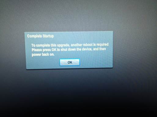 The system will now restart, perform more upgrade steps, and afterwards will display a window asking you to click “OK” to shut down the system.