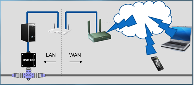 Figure 2 – LAN Client/Server Architecture Example with USB100