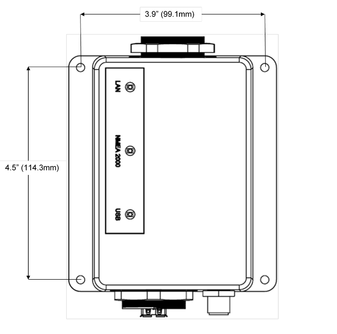 The USB port on the IPG100 is for plugging in the N2KView® Hardware License Key (purchased separately). Hardware license keys that can be used with the IPG100 can also be used with the Windows N2KServer® software product. The USB connection can be made waterproof with the purchase of the optional PX0852 USB waterproof cover, which completely covers the N2KView® Hardware License Key and engages the threads on the USB connector, creating a waterproof seal.