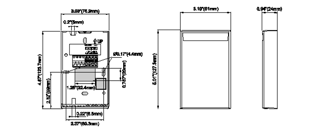 1. Remove the faceplate from the IRHT-01 by pressing down on the latch at the top with a pen or tool and rotating the faceplate down away from the back of the device.