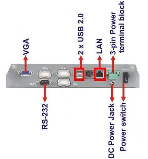 · 1 x 3-pin power terminal block with wide range power input (9V-36V)