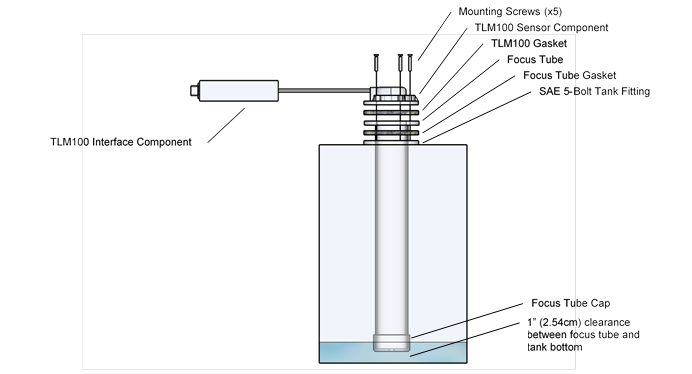 Figure 3 – Mounting TLM100 to SAE 5-Hole Tank with Focus Tube