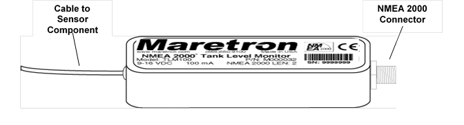 The TLM100 tank level monitor consists of two parts: 1) the sensor, which mounts onto the top of the tank and contains the ultrasonic level measurement components, and 2) the interface, which converts the measured data into NMEA 2000® format and transmits the data over the NMEA 2000® network.