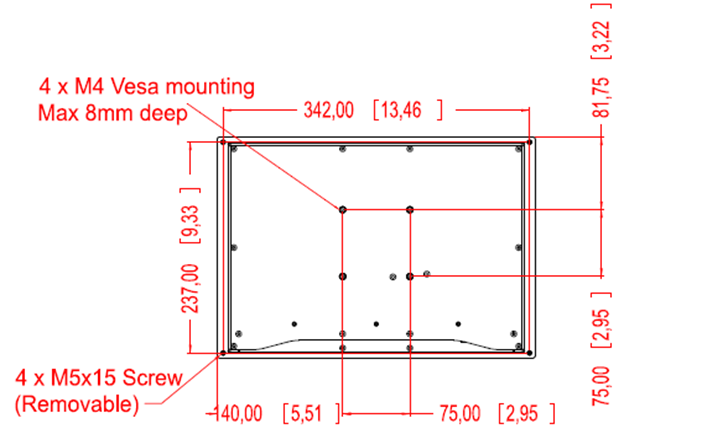 Figure 3 – TSM1330C VESA Arm Mounting Retention Screw Holes