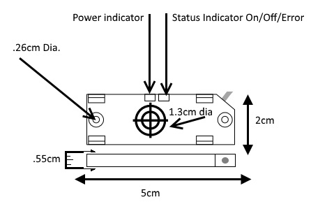 The BHW100 sensor has a etched target molded into the plastic enclosure (located opposite of the side with a Maretron label). The target should be exposed to the area of detection to monitor water ingress in monitored area or compartment. If the presence of water rises and occupies the target area the unit will trigger an internal contact for SIM100 detection. For testing, the BHW100 will indicate locally on the sensor a close contact condition by illuminating in red a visibly enclosed LED. Perform this test after installation to ensure proper signals detected by the Maretron Switch Indicator Module (SIM100).