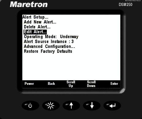 - Press to display the Alert menu and then use the arrow keys to scroll to the "Edit Alert..." submenu