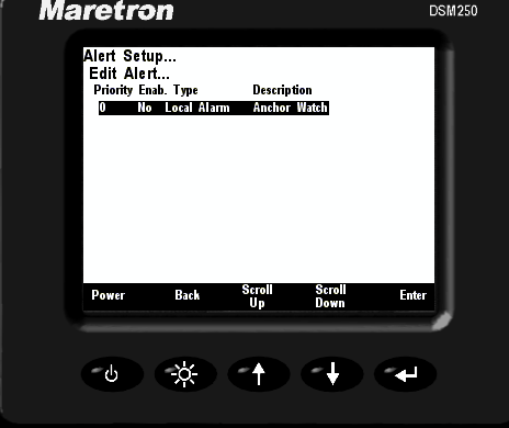 - Press to display the Edit Alert submenu. The Anchor Watch alert will be highlighted.
