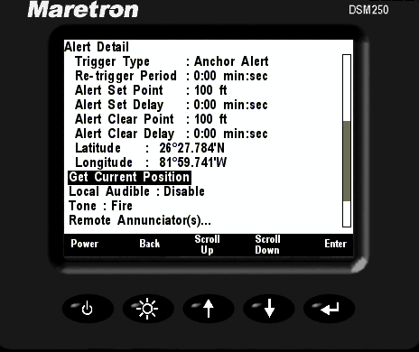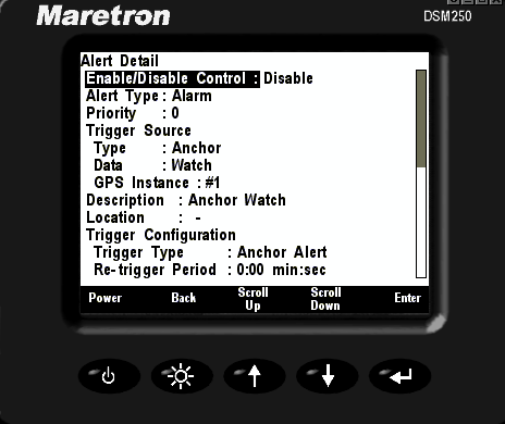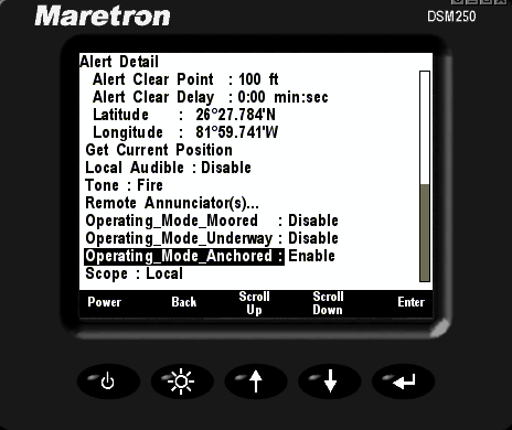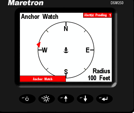Estimated Reading Time: 1 MinutesDSM150 and DSM250 display with firmware version 1.4.6 or higher with factory default settings have a single anchor watch alert and favorite screen associated.
