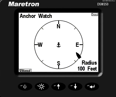 - Use the arrow keys to display favorite screen 12 with the Anchor watch display.