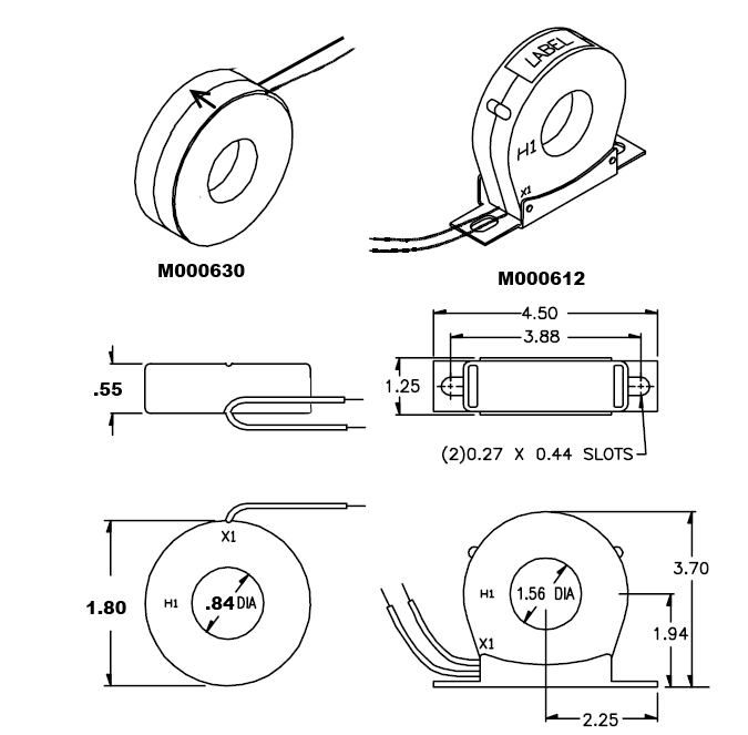 What are the dimensions of the two ACM100 current transformer accessories? Estimated Reading Time: < 1 Minute 589 Mark Oslund July 30, 2015 ACM100 0 7086 Please refer to Figure 1 below for the ACM100s CT dimensions: Figure 1